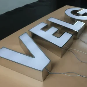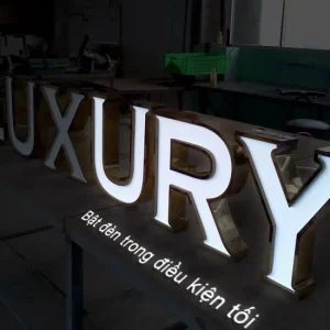 Chữ inox mặt mica – chữ mica inox – chữ nổi phát sáng