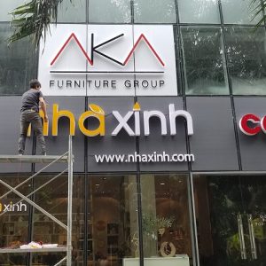 - Thi công làm bảng hiệu chữ nổi Inox.