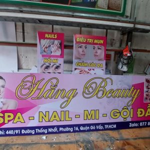 Đây là loại bảng hiệu được lựa chọn ưu tiên hàng đầu của các tiệm nail, nối mi nhằm gây sự thu hút của khách hàng cũng như tạo ấn tượng ban đầu cực kì mạnh mẽ ngay từ cái nhìn đầu tiên.