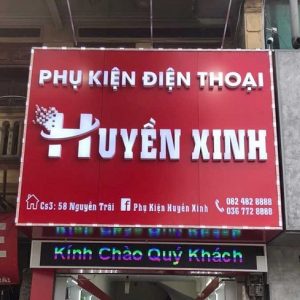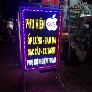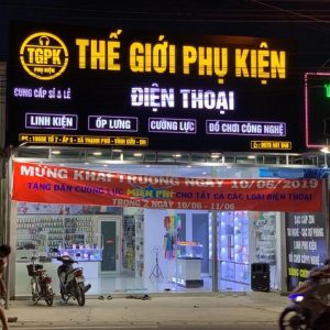 - Bảng hiệu phụ kiện điện thoại đèn led: việc sử dụng các bóng đèn led sẽ giúp cho bảng hiệu nổi bật hơn khi về đêm.