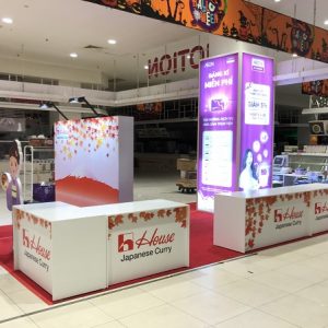 - Booth cố định: Có kích thước lớn, được lắp cố định và thường chỉ sử dụng cho một chiến dịch marketing.