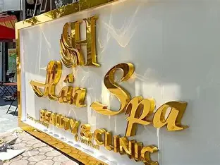 • Biển Alu phủ gương vàng, chữ inox bóng sang trọng.