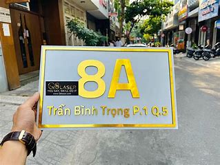 • Đặc điểm: Nền Alu màu trung tính (trắng, xám, đen) kết hợp chữ nổi inox hoặc mica.