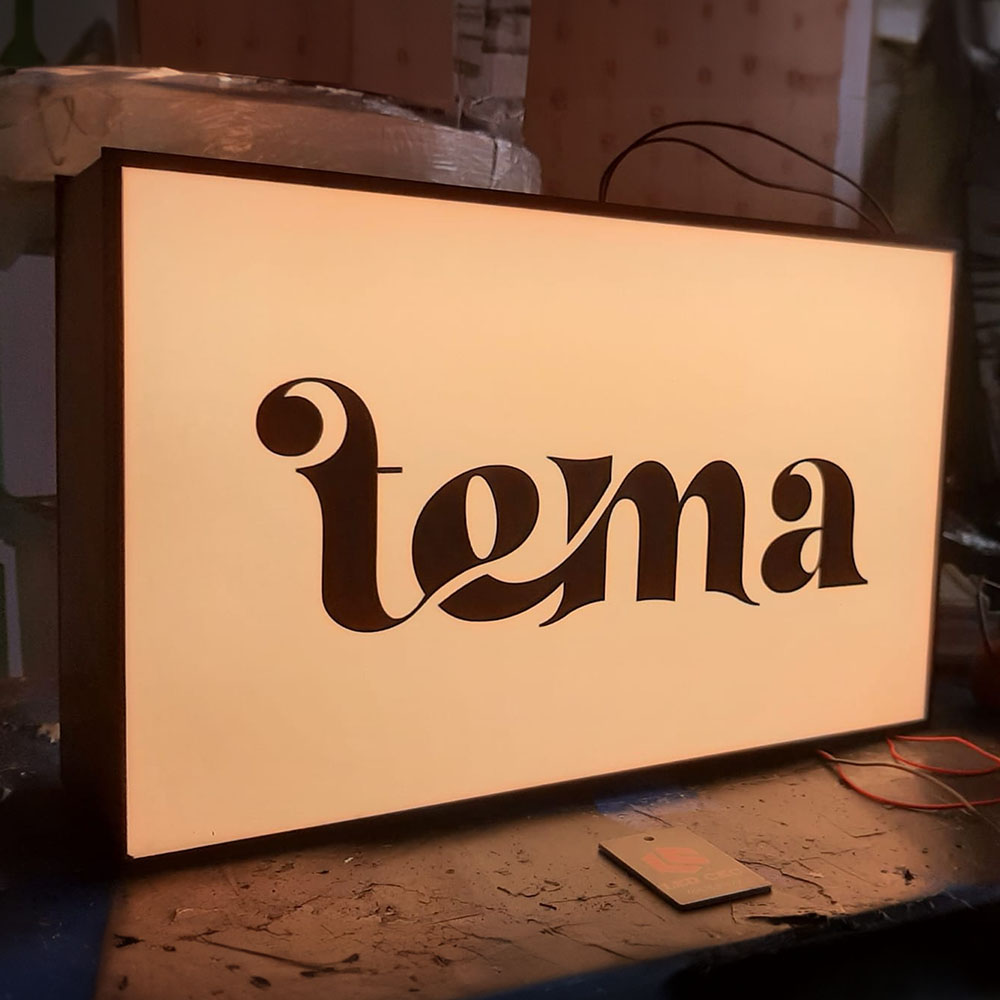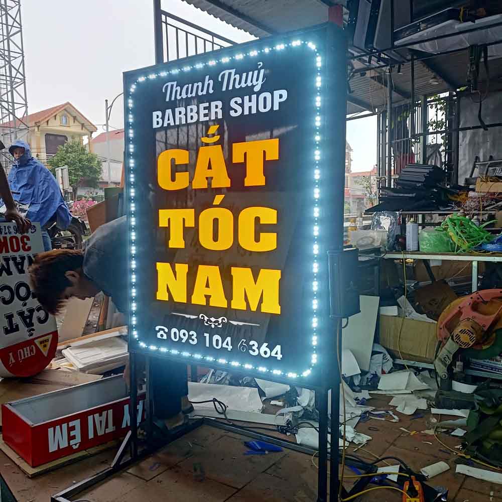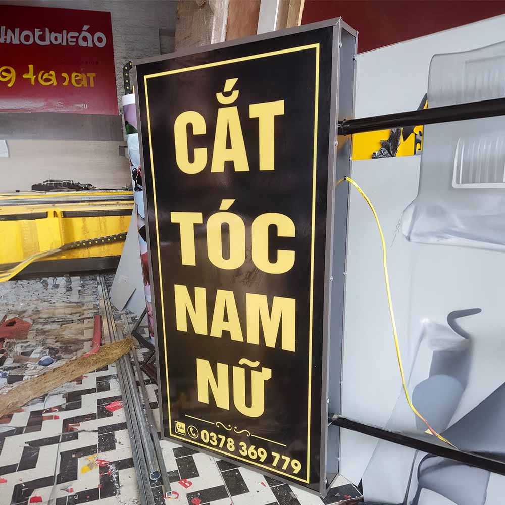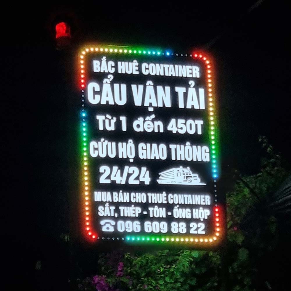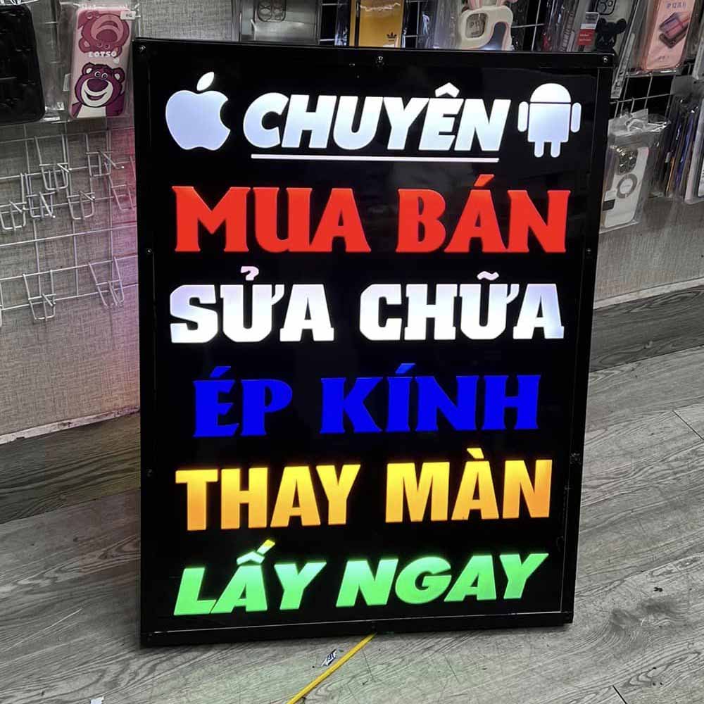 - Mặt mica hoặc alu khoét chữ, gắn LED RGB nhấp nháy