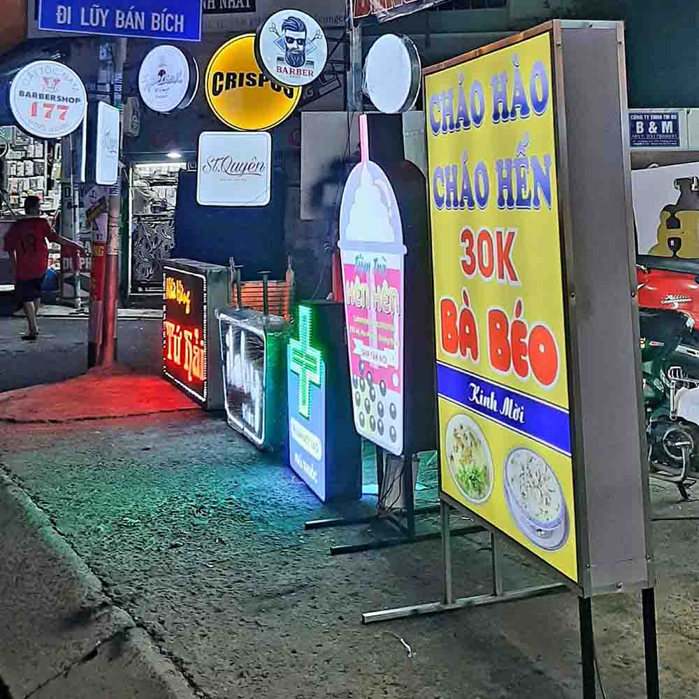 Biển LED vẫy là lựa chọn lý tưởng cho các cửa hàng hoạt động buổi tối hoặc ở mặt tiền đường lớn. Ưu điểm của loại biển này là khả năng hiển thị cao, ánh sáng mạnh, thiết kế linh hoạt và cực kỳ thu hút người đi đường.