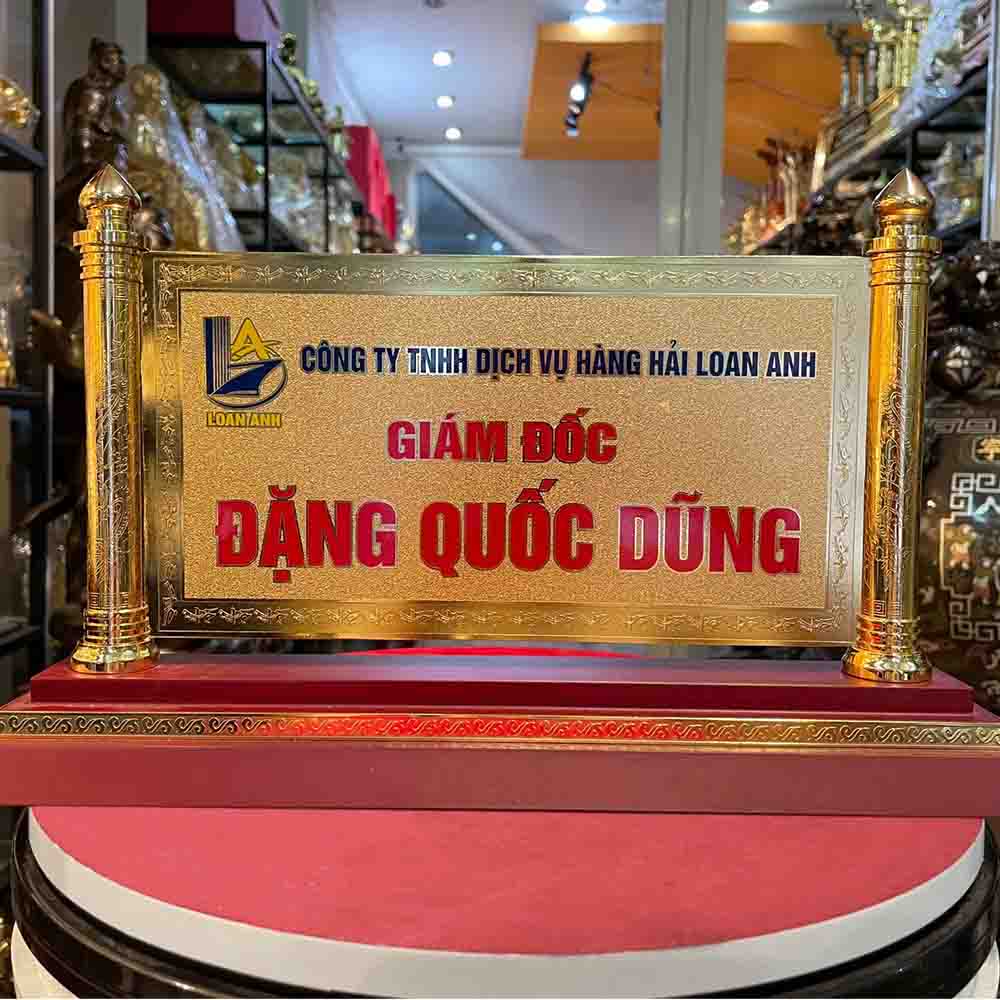 Biển đồng công ty là bảng tên cao cấp được làm từ đồng tấm nguyên khối, ăn mòn axit hoặc khắc CNC, phủ lớp sơn bảo vệ giúp chống oxy hoá, dùng cho công ty lớn, cơ quan nhà nước, ngân hàng…