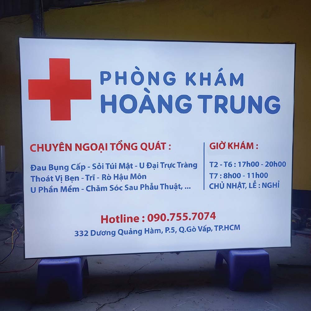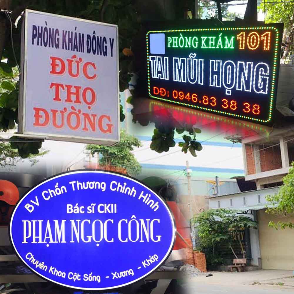 Bảng Hiệu Phòng Khám Đẹp: Bảng hiệu phòng khám tiêu chuẩn y tế, thiết kế xanh trắng sạch sẽ. Rõ ràng, dễ nhìn, tạo niềm tin cho bệnh nhân.