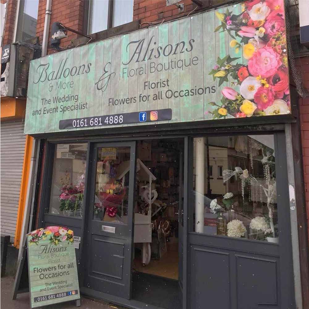 Cửa hàng hoa tươi yêu cầu bảng hiệu nhẹ nhàng, lãng mạn, thường dùng màu hồng, xanh lá, trắng, font viết tay. Gợi ý thêm hình ảnh bó hoa, hoa hồng, lan, cúc…