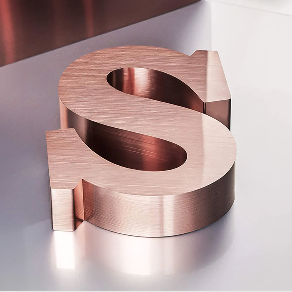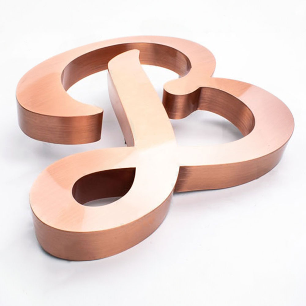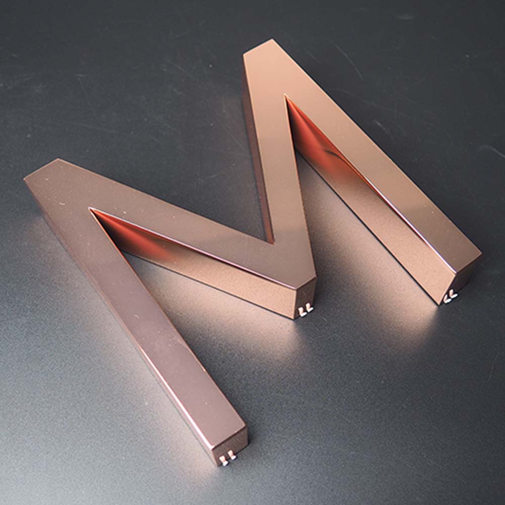 Chữ inox mạ vàng đồng là dạng chữ inox mạ màu đồng ánh vàng, mang lại phong cách cổ điển, đẳng cấp. Thường dùng cho spa, phòng trà, boutique cao cấp.