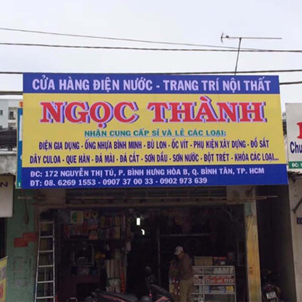 Mẫu Bảng Hiệu Cửa Hàng Điện Nước: Bảng hiệu điện nước bền đẹp, dễ đọc, màu sắc rõ ràng. Thích hợp cửa hàng vật liệu, thiết bị dân dụng, điện công nghiệp.