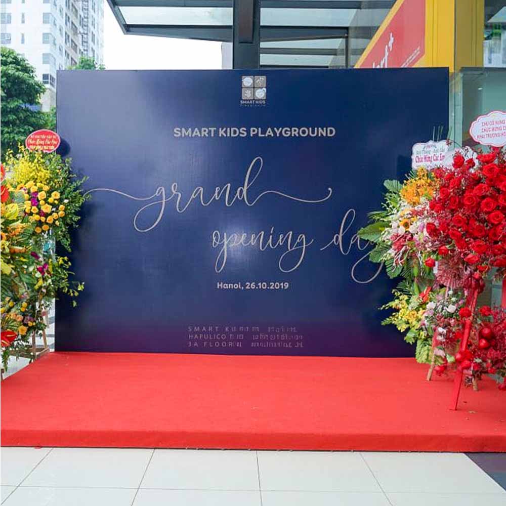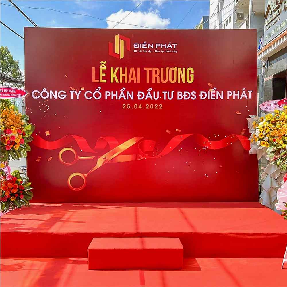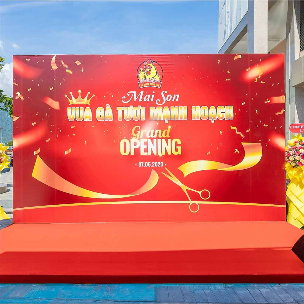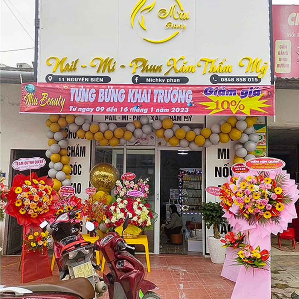 Ngày khai trương không thể thiếu bảng hiệu với thiết kế chúc mừng, rực rỡ và may mắn. In bạt, foam, decal hoặc LED đều có thể sử dụng tuỳ ngân sách.